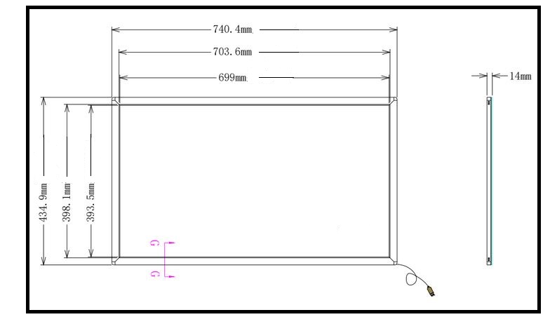 - Wymiar zewnętrzny [mm]: 740,4 × 434,9